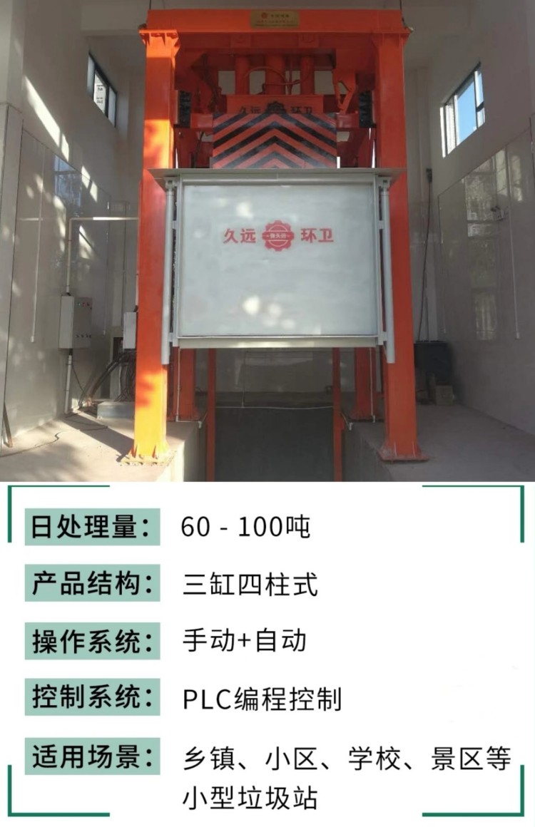 垂直式垃圾壓縮設備在原立式壓縮站的基礎上將單杠直壓變為三缸同壓,大大降低了房屋高度,科技含量高;采用12只液壓油缸控制運行,操作更加靈活簡便,性能穩定。該產品適用于城鎮生活垃圾的儲存、壓縮和轉運,通??稍O置在靠近街道及居民生活小區內,是當今生活垃圾處理的理想設備。