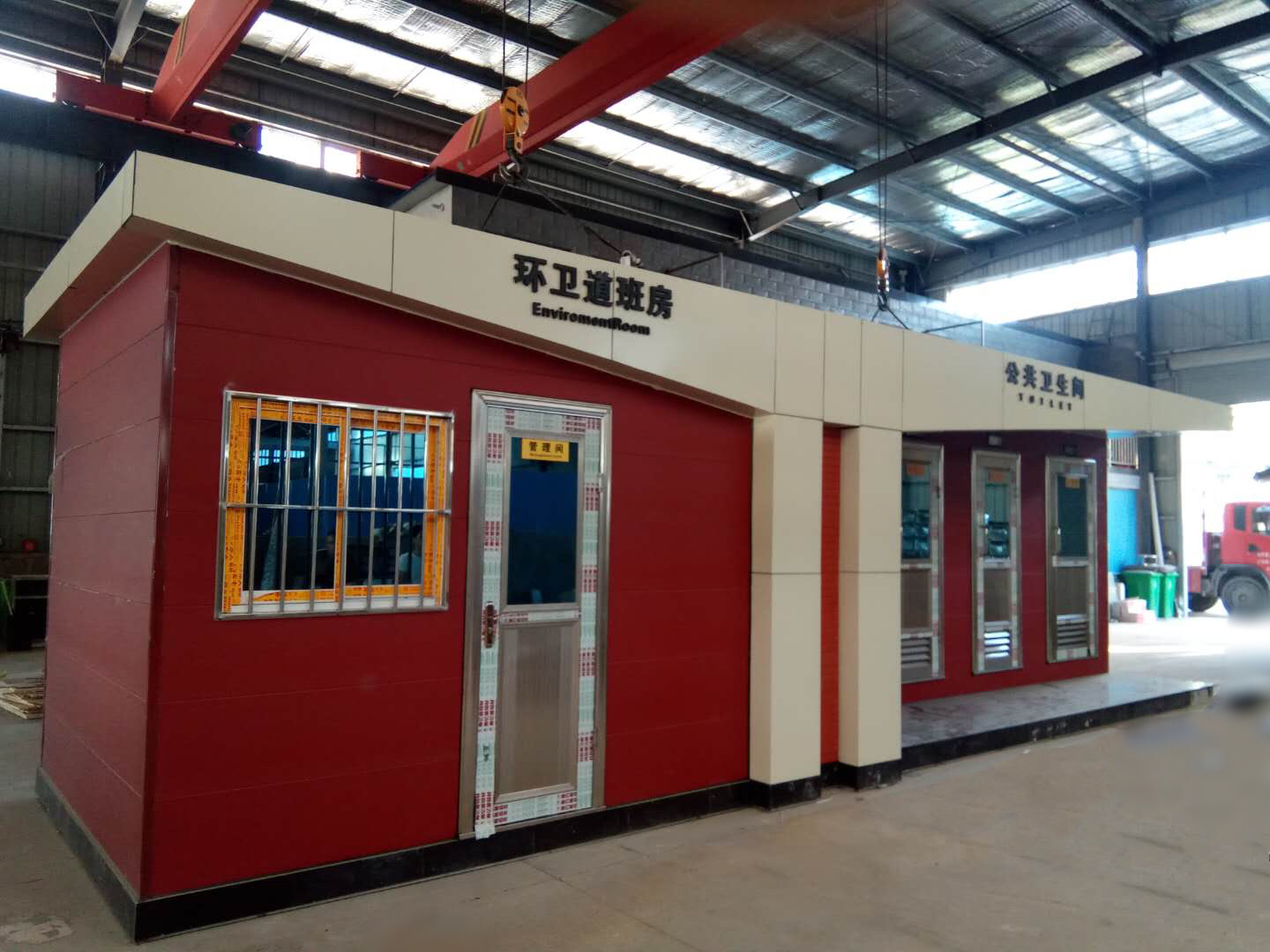 1、房體結(jié)構(gòu): 采用輕鋼龍骨結(jié)構(gòu),鋼材全部使用國家標(biāo)準(zhǔn)鍍鋅鋼材。根據(jù)房體的大小特選用國標(biāo)方管(50-100)焊接而成。鍍鋅管厚度為2.8mm,方管經(jīng)過除銹后進(jìn)行鍍鋅、防腐處理。這樣就會(huì)延長廁所使用壽命。