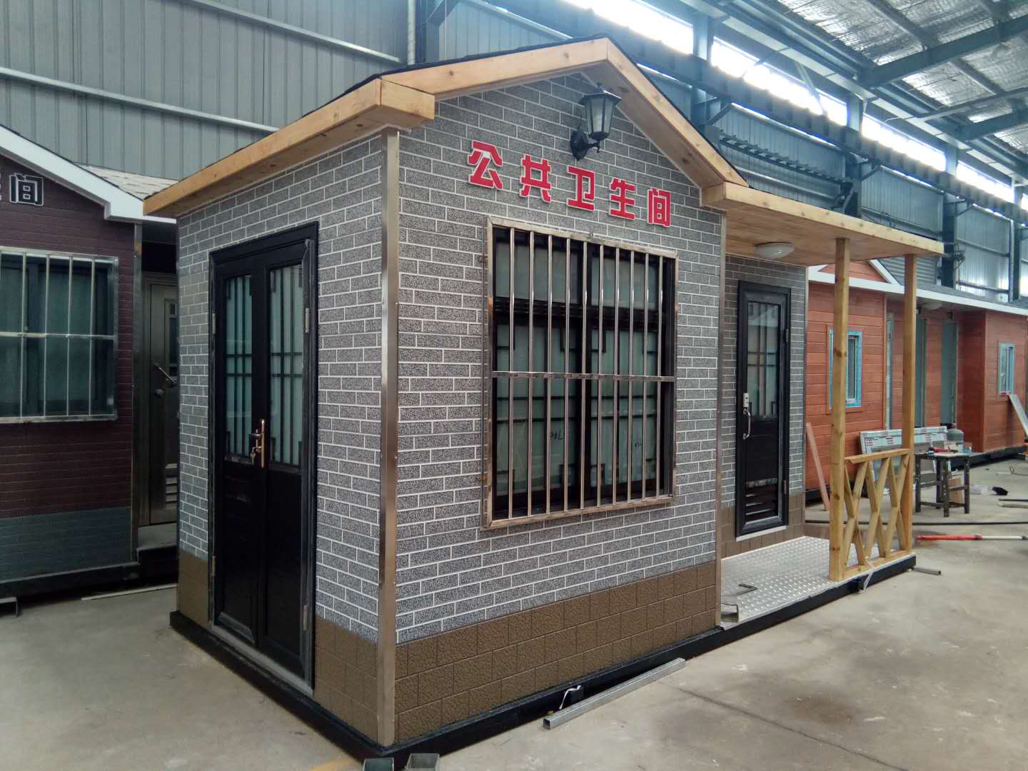 移動廁所簡介及制作方法:1、房體結構: 采用輕鋼龍骨結構,鋼材全部使用標準鍍鋅鋼材。根據房體的大小特選用國標方管(50-100)焊接而成。鍍鋅管厚度為2.8mm,方管經過除銹后進行鍍鋅、防腐處理,這樣就會延長廁所使用壽命.2、墻體: 墻板采用金屬雕花板,金屬雕花板是保溫、隔熱、環保、阻燃、防雨、防凍、隔音、抗震等...
